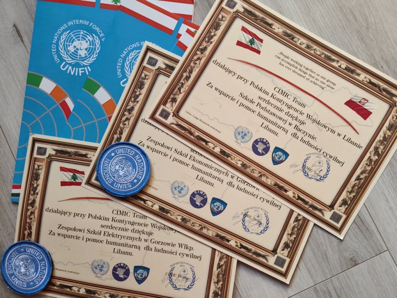 Ale w pomoc zaangażowało się nie tylko Wojsko Polskie. Ze wsparciem spieszą także uczniowie lubuskich szkół. Do polskiej pomocy dołączyły dwie szkoły z północy naszego regionu. To Szkoła Podstawowa z Baczyny i Zespół Szkół Ekonomicznych w Gorzowie Wielkopolskim. Uczniowie przez miesiąc organizowali zbiórkę dla dzieci w Libanie. Zbierana była żywność długoterminowa dla maluchów, pieluchy, słoiki z żywnością, a dla starszych plecaki szkolne i przybory szkolne. - To co młodzież miała zbierać, zostało skonsultowana z przedstawicielami Sekcji Cywilno-Wojskowej CIMIC, która w Libanie prowadzi i koordynuje współpracę z miejscową ludnością. To od miejscowych dowiedzieliśmy się czego najbardziej potrzeba w Libanie. Na tej podstawie młodzież prowadziła w szkołach zbiórki, których efekty dziś widzimy: 10 plecaków szkolnych, 10 piórników, 8 opakowań pieluch i nawilżanych chusteczek oraz żywność długoterminowa. - mówi organizator akcji, sierż. Marcin KAMIŃSKI ze Związku Żołnierzy Wojska Polskiego.